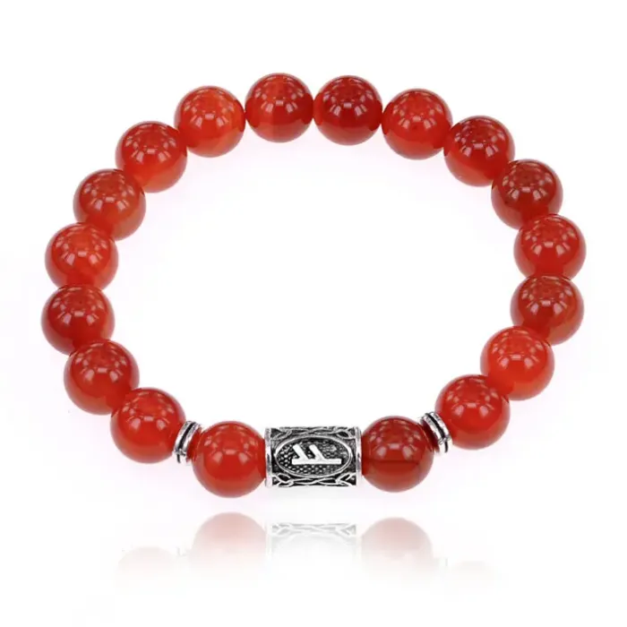 Стрейч-браслет с руной Феху и бусинами из натурального сердолика.