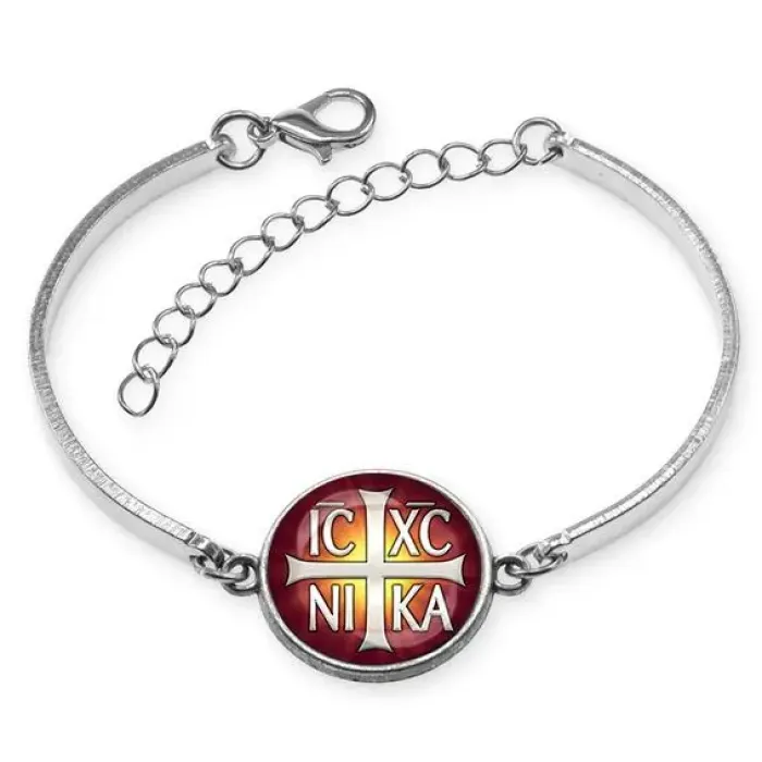 Браслет из бижутерного сплава с изображением креста, который имеет диаметр 18 мм и защищен выпуклой стеклянной линзой. Этот стильный аксессуар не только подчеркивает индивидуальность, но и является символом веры. Размер браслета безразмерный и регулируется по руке, что делает его удобным для носки. Изготовлен из бижутерного сплава с покрытием под серебро и дополнен стеклом, что придает изделию элегантный вид. Такой браслет станет замечательным подарком или элементом личной коллекции сувениров.