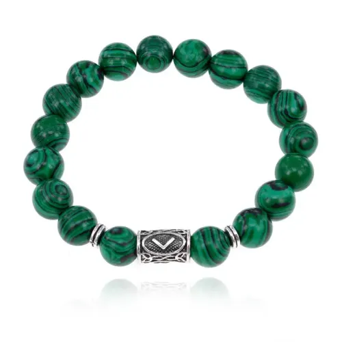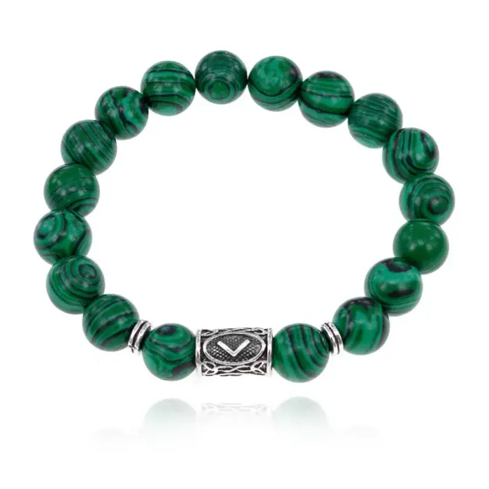 Стрейч-браслет с символом руны Кеназ и бусинами из синтетического малахита.