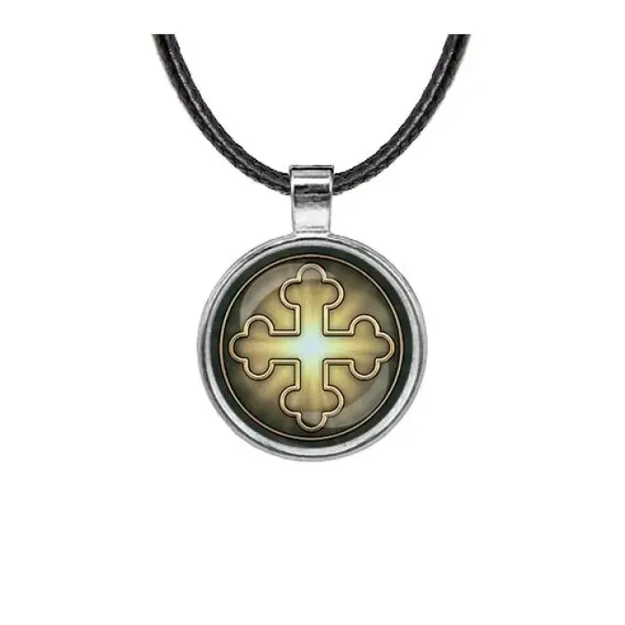 Кулон «Крест Трилистниковый» — это стильное украшение, которое сочетает в себе элегантность и символизм. Этот кулон выполнен из бижутерного сплава с покрытием под серебро и дополнен стеклянной линзой, защищающей изображение.