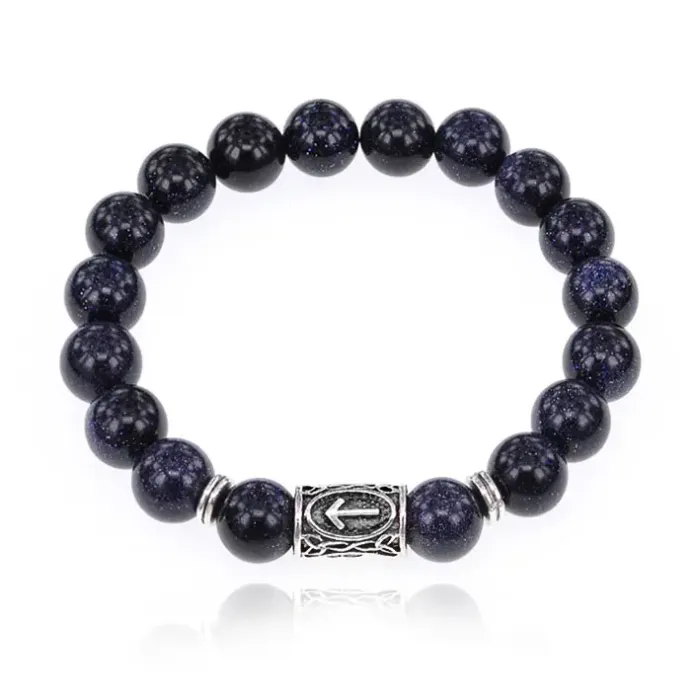 Браслет с руной Тейваз и синт.камнем Синий авантюрин BSRM-20-02