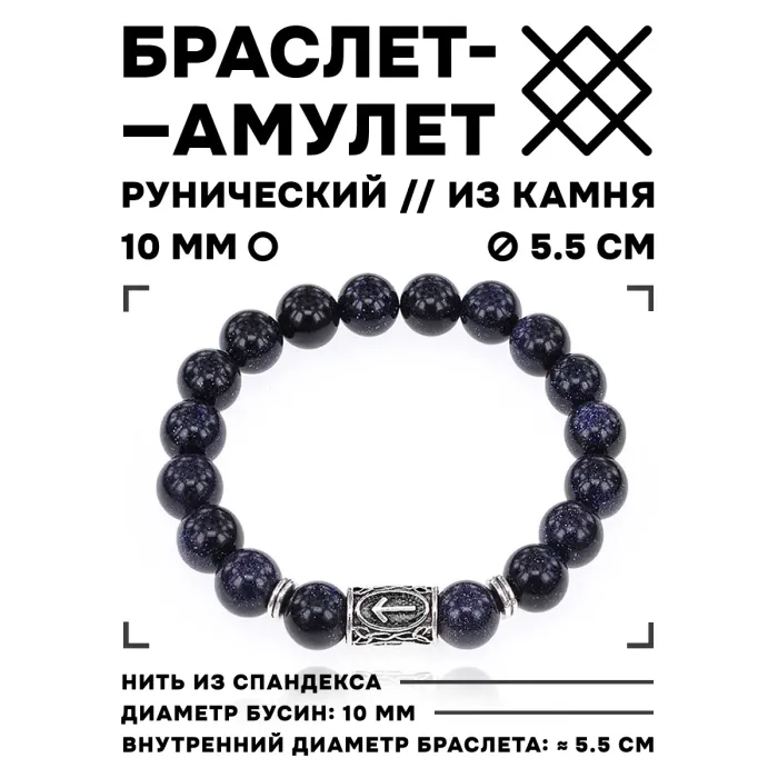 Стрейч-браслет с символом руны Тейваз и бусинами из синтетического камня.