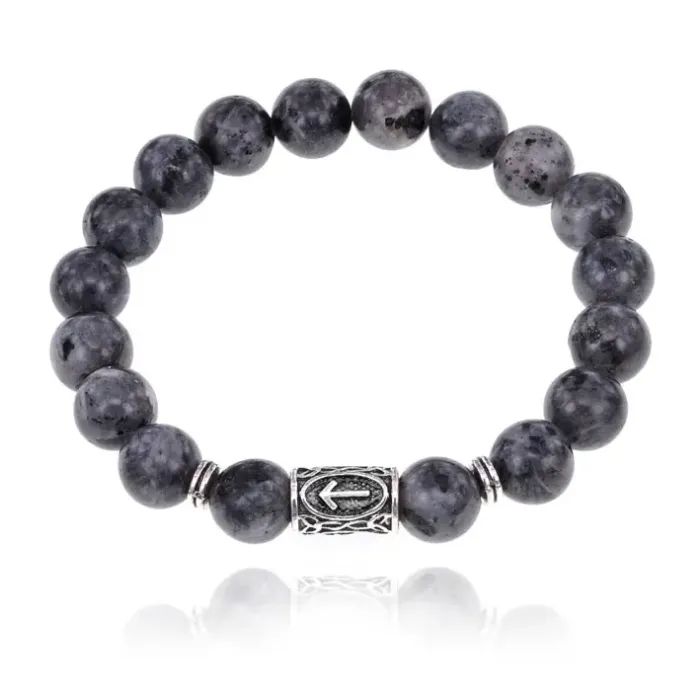 Стрейч-браслет с руной Тейваз и натуральным камнем лабрадор.