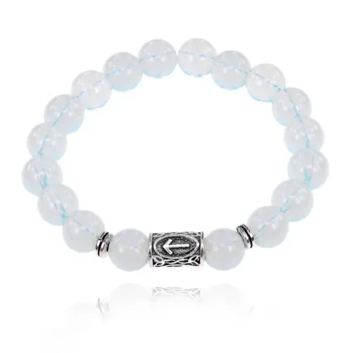 Стрейч-браслет с руной Тейваз и бусинами из синтетического лунного камня.