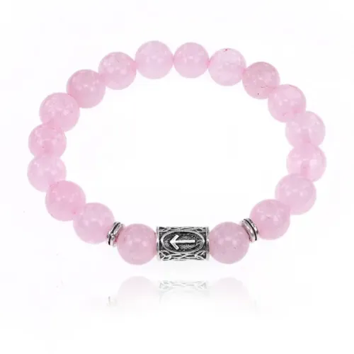 Стрейч-браслет с символикой руны Тейваз и бусинами из натурального розового кварца.