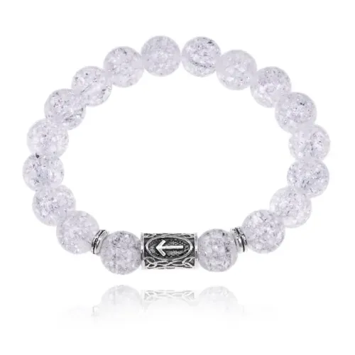 Браслет с руной Тейваз и синт.камнем Сахарный кварц BSRM-20-16