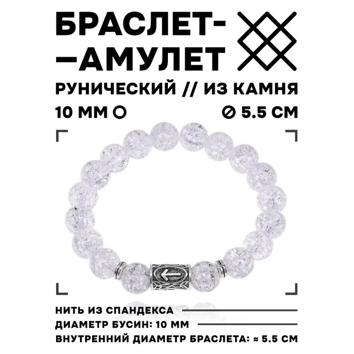 Стрейч-браслет с руной Тейваз и бусинами из синтетического сахарного кварца.