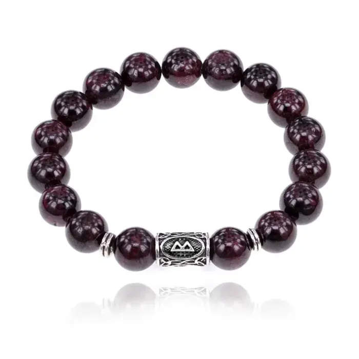 Стрейч-браслет с руной Беркана и натуральным камнем гранат.