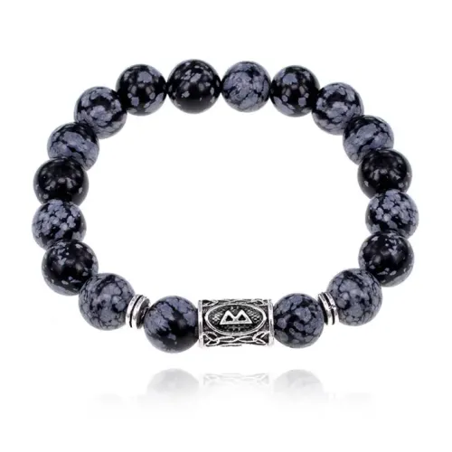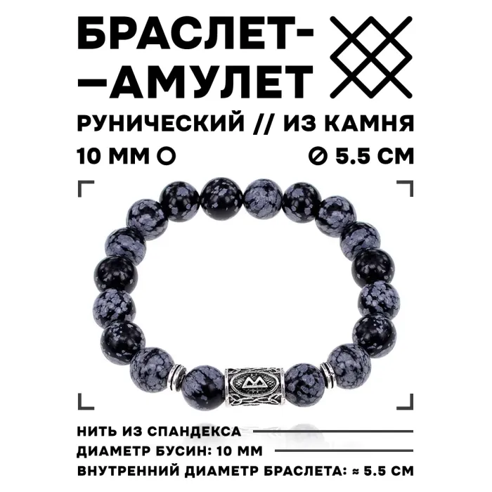 Браслет с руной Беркана и нат.камнем Снежный обсидиан BSRM-21-14