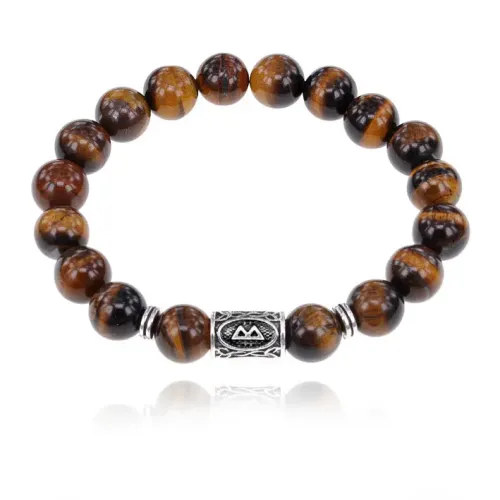 Стрейч-браслет с символом руны Беркана и бусинами из натурального камня тигровый глаз.