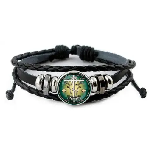 Кожаный браслет с изображением Креста Голгофа — символа веры и духовности. Изготовлен из высококачественной экокожи, он сочетает в себе стиль и комфорт. Основные особенности: