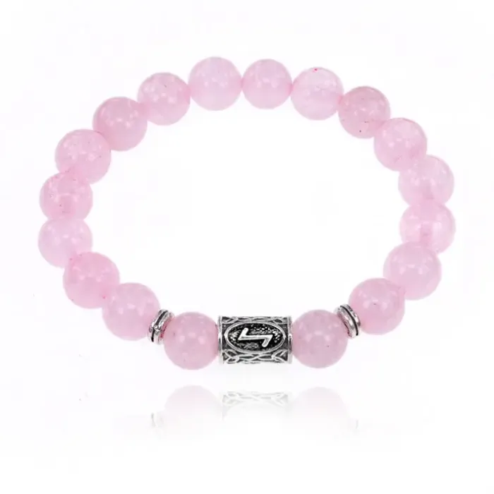Стрейч-браслет с руной Эйваз и бусинами из розового кварца.