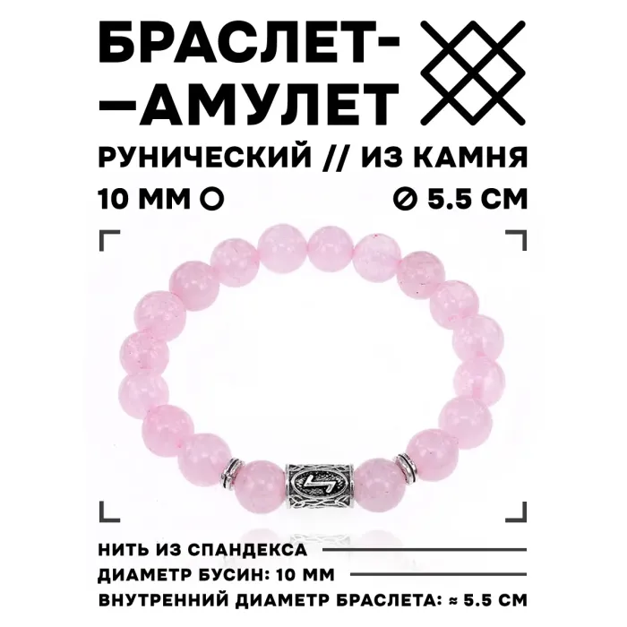 Браслет с руной Эйваз и нат.камнем Розовый кварц BSRM-22-15