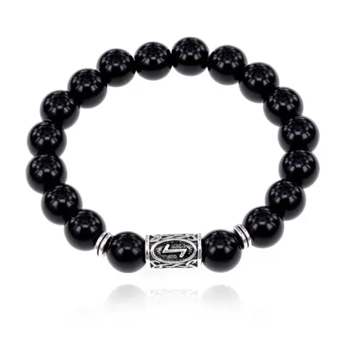 Браслет с руной Эйваз и нат.камнем Черный агат BSRM-22-23