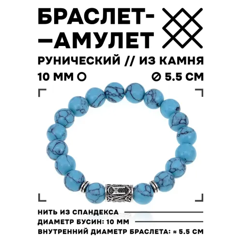 Стрейч-браслет с руной Манназ и синтетическим камнем бирюза.