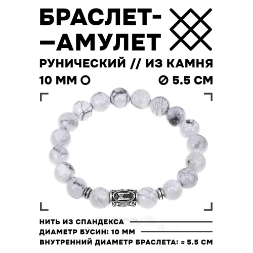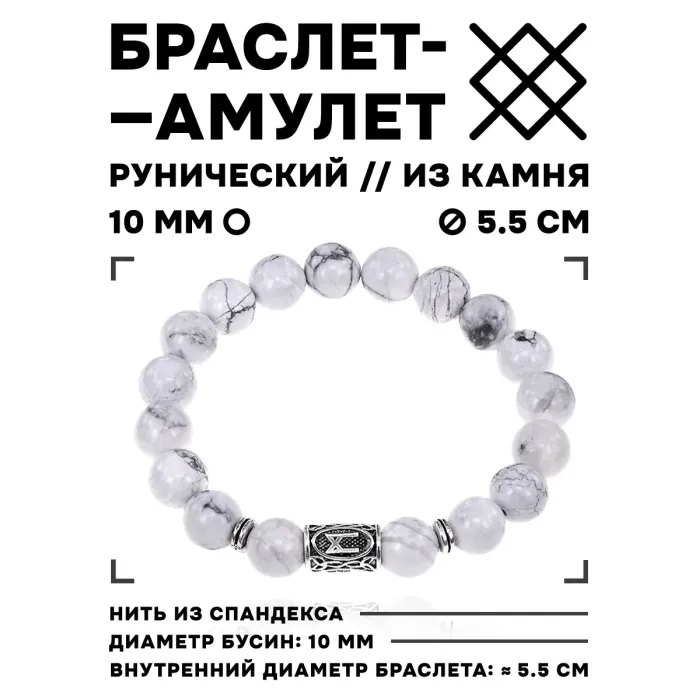 Стрейч-браслет с руной Манназ и натуральным камнем кахолонг.