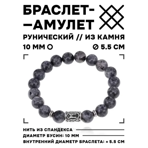 Стрейч-браслет с руной Манназ и бусинами из натурального лабрадора.