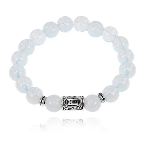 Стрейч-браслет с символом руны Манназ и бусинами из синтетического лунного камня (опалита).