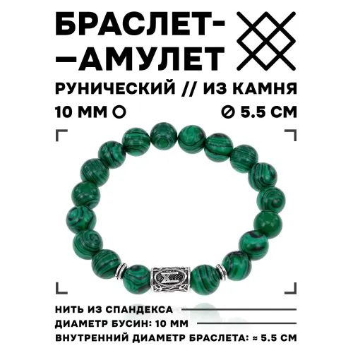 Браслет с руной Манназ и синт.камнем Малахит BSRM-23-12