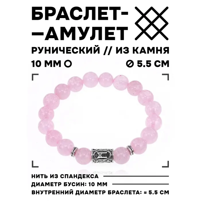 Стрейч-браслет с бусинами из натурального розового кварца и руной Манназ.