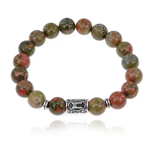 Браслет с руной Манназ и нат.камнем Унакит BSRM-23-20