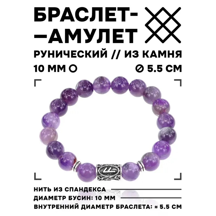 Стрейч-браслет с руной Ансуз и натуральным камнем аметист.