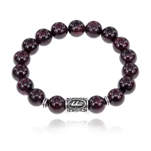 Стрейч-браслет с символом руны Ансуз и натуральным камнем гранат.