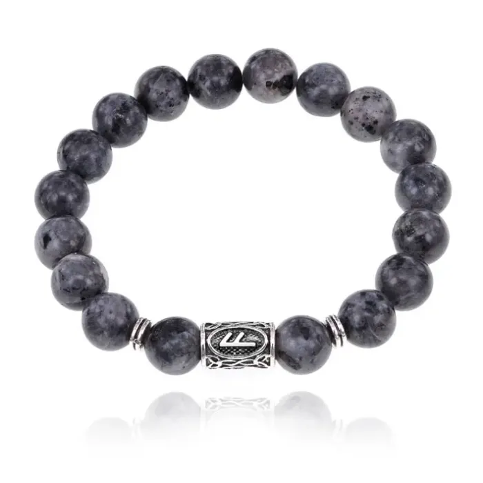 Стрейч-браслет с руной Ансуз и натуральным камнем лабрадор.