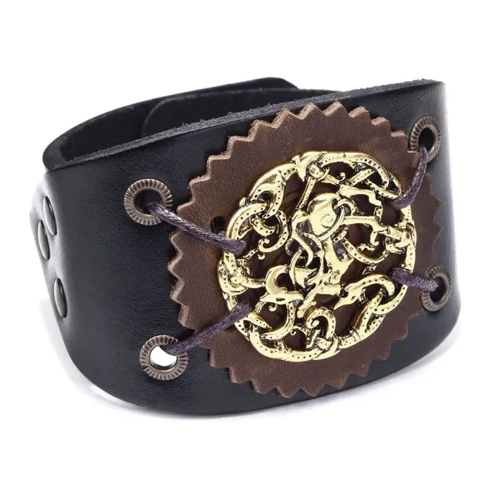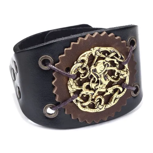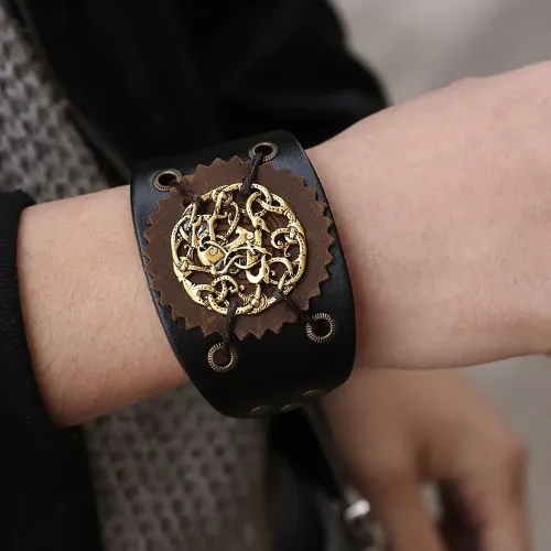 Кожаный браслет с металлической пряжкой для регулировки размера.