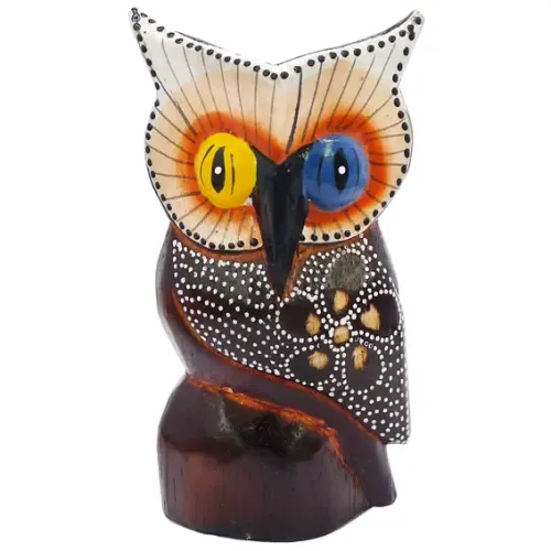 Деревянная статуэтка совы ручной работы для интерьерного декора.