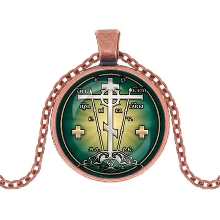 Кулон «Крест Голгофа» — это изысканный аксессуар, который сочетает в себе духовный символизм и стильный дизайн. Он выполнен из бижутерного сплава с покрытием под медь и дополнен стеклянной линзой, защищающей изображение. Этот кулон станет прекрасным подарком для тех, кто ценит религиозные символы и уникальные украшения.