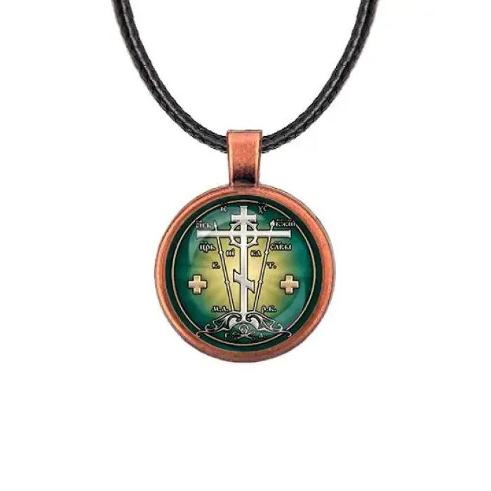 Кулон в форме Креста Голгофа — это не только стильное украшение, но и символ веры и духовной силы. Изготовленный из бижутерного сплава с покрытием под медь и стекла, он станет прекрасным дополнением к любому образу. Основные особенности: