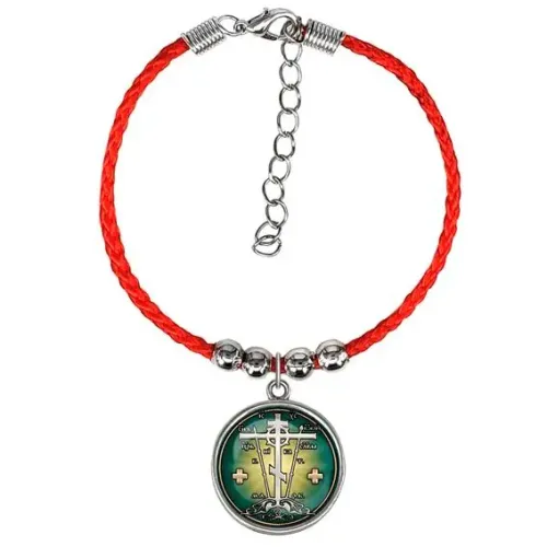 Браслет из красного шнура — это стильный аксессуар с глубоким символическим значением. Изображение Креста Голгофа, защищенное выпуклым стеклом, расположено на металлической основе и придает изделию уникальность. Максимальный диаметр браслета составляет 7,5 см и регулируется под размер запястья. Используемые материалы: прочный шнур, бижутерный сплав с покрытием под серебро и качественное стекло. Диаметр изображения составляет 20 мм, что делает его заметным акцентом в любом образе. Этот браслет может стать не только модным украшением, но и символом веры или личных убеждений.