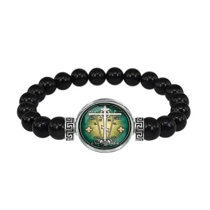Браслет из чёрного агата, Крест Голгофа C1007056