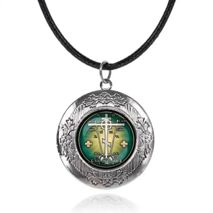 Арома-кулон металлический в форме Креста Голгофа добавляет нотку стиля и духовности. Изготовленный из бижутерного сплава под серебро, этот кулон станет не только украшением, но и источником приятных ароматов. Размер 36х33 мм идеально подходит для повседневной носки. Укомплектован шнурком с застёжкой и впитывающим шариком для легкости использования. Изображение под выпуклой стеклянной линзой диаметром 20 мм придаёт изделию уникальный вид. Такой кулон отлично подойдет в качестве небольшого подарка или для создания уютной атмосферы.