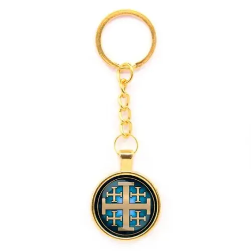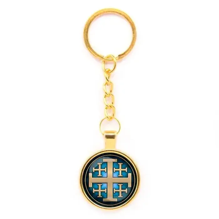Круглый брелок, цвет золото, с цепочкой, Крест Иерусалимский C1008020