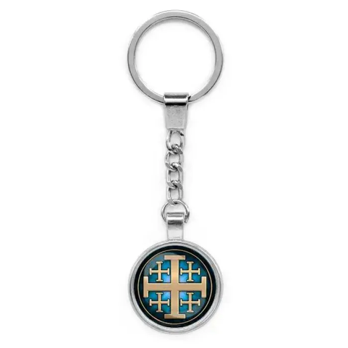 Круглый брелок, цвет серебро, с цепочкой, Крест Иерусалимский C1008022