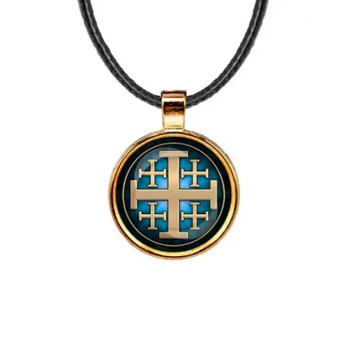 Кулон «Крест Иерусалимский» — это изысканный аксессуар, который сочетает в себе красоту и глубокий символизм. Этот кулон выполнен из бижутерного сплава с покрытием под золото и дополнен стеклянной линзой, защищающей изображение. Основные особенности: