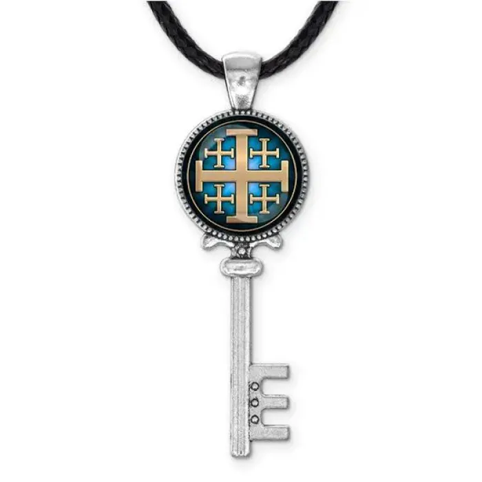 Кулон в форме ключа с изображением Креста Иерусалимского — это не просто украшение, но и символ веры и защиты. Выполненный из бижутерного сплава с покрытием под бронзу и стеклом, этот кулон станет стильным акцентом любого образа.
