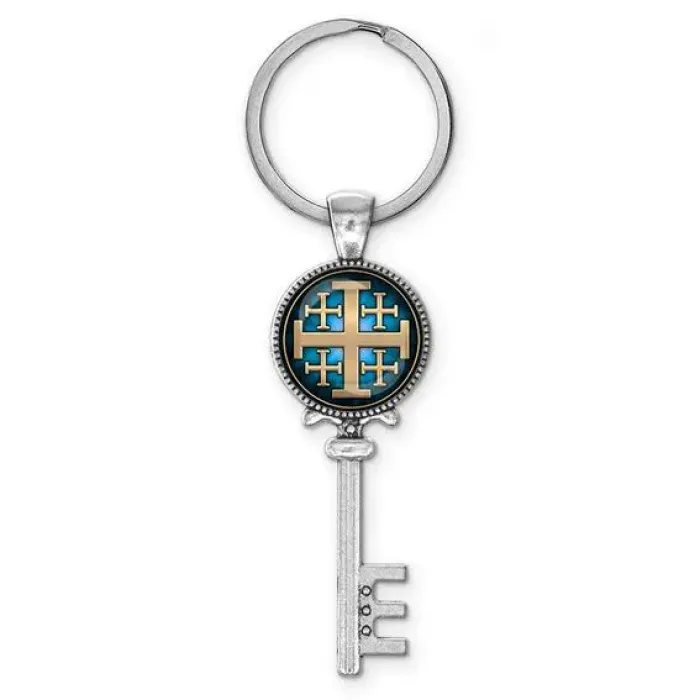 Брелок ключ, цвет серебро, с кольцом для ключей, Крест Иерусалимский C1008044