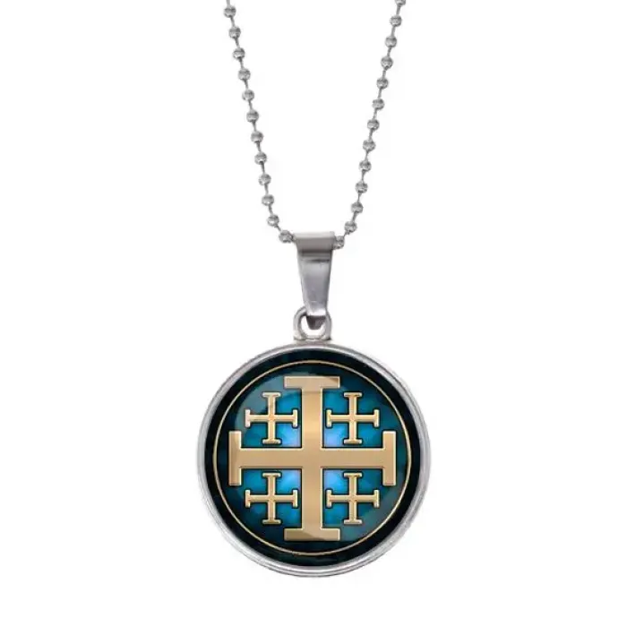Кулон в форме Иерусалимского креста — это не только стильный аксессуар, но и символ веры и защиты. Он выполнен из бижутерного сплава с покрытием под серебро и украшен стеклом, что придаёт ему особую элегантность. Основные особенности: