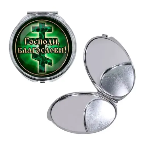 Круглое складное зеркало, цвет серебро, Господи, Благослави! C1009016
