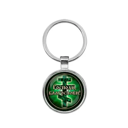 Круглый брелок с надписью 'Господи, Благослави!' является символом веры и надежды. Этот стильный аксессуар выполнен из бижутерного сплава с покрытием под серебро и стекла, что придаёт ему элегантный вид. Размер брелка составляет 28х60 мм вместе с кольцом. Изображение защищено выпуклой стеклянной линзой, что обеспечивает долговечность и яркость деталей. Такой брелок станет не только практичным предметом для ключей, но и прекрасным подарком для близких в знак поддержки и благословения.