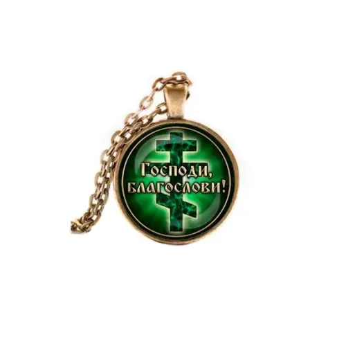 Кулон «Господи, Благослави!» — это стильный аксессуар с глубоким смыслом. Он символизирует благословение и защиту в повседневной жизни. Изготовленный из бижутерного сплава с покрытием под бронзу и стекла, кулон привлекает внимание своим элегантным дизайном.