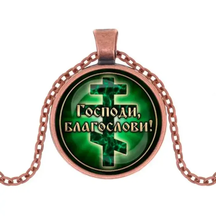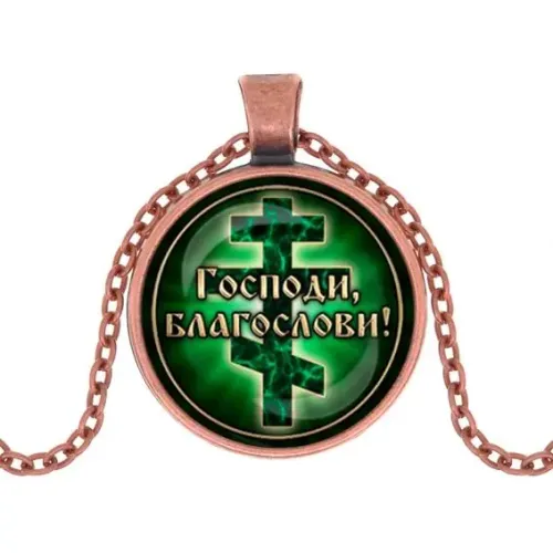 Кулон "Господи, Благослави!" — это не только стильный аксессуар, но и символ духовной поддержки. Изготовленный из бижутерного сплава с покрытием под медь и стекла, он станет прекрасным подарком для близких или личным амулетом. Основные особенности: