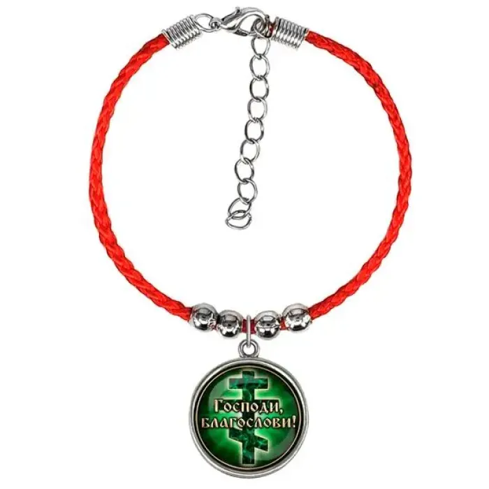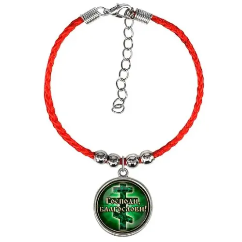 Браслет из красного шнура — это стильный аксессуар с глубоким символическим смыслом. Он традиционно используется как оберег и выражение веры. Изготовленный из яркого и прочного шнурка, браслет украшен изображением, защищенным выпуклым стеклом на металлической основе.