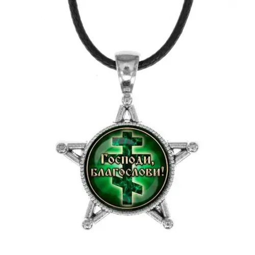 Звезда-кулон с надписью "Господи, Благослави!" — это не только стильный аксессуар, но и символ духовной поддержки. Изготовленный из бижутерного сплава под серебро и стекла, кулон станет отличным подарком для близких или собственным оберегом. Основные характеристики: