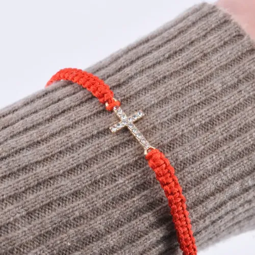 Плетёный браслет из красной нити, символизирующий веру и надежду. Изготовлен из текстиля и металла с покрытием под золото, украшен стразами. Размеры коннектора составляют 1х1,5 см, а толщина браслета — 5 мм. Браслет регулируется по обхвату запястья, что обеспечивает комфортное ношение. Этот аксессуар не только стильный элемент гардероба, но и глубокий символ духовной связи.