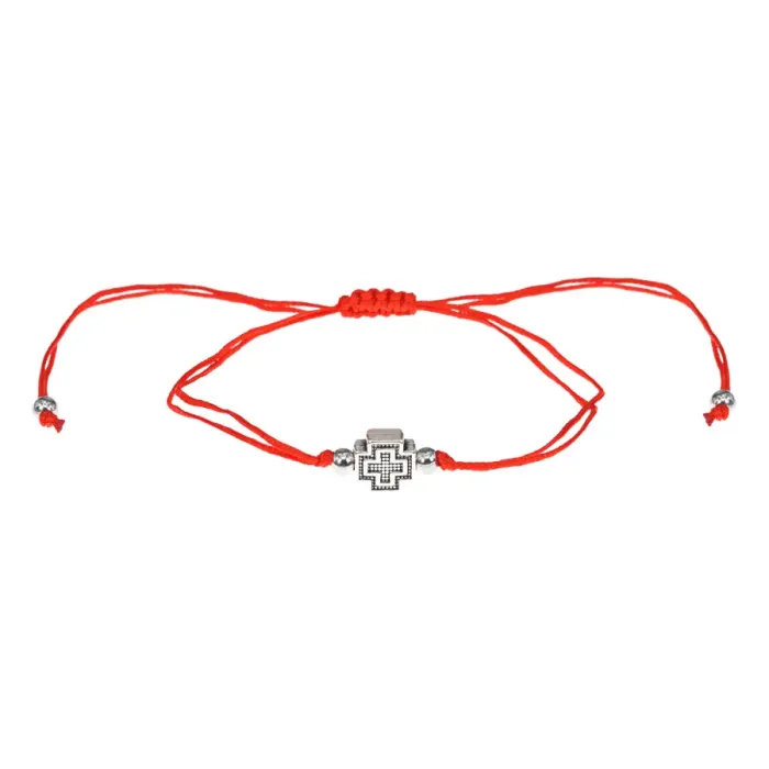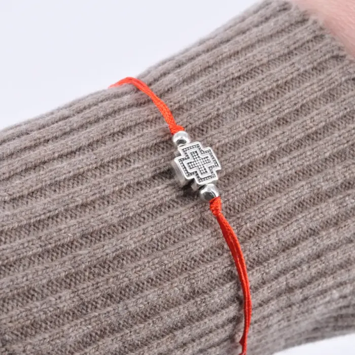 Плетёный браслет из красной нити, символизирующий веру и духовную силу. Этот стильный аксессуар станет не только модным дополнением, но и важным оберегом. Изготовлен из текстиля и металла с покрытием под серебро, что обеспечивает долговечность изделия.