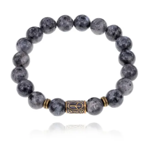 Славянский рунический стрейч-браслет из натурального камня лабрадор с символом руны Чернобог.